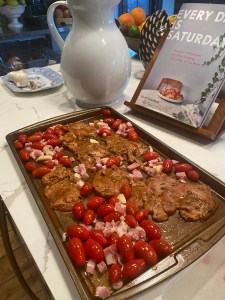 I happen to love Salmon, I find it’s nutritious , tasty and so very versatile. Yesterday I posted one of my favorite air fryer recipes for salmon . There are countless ways to cook and serve salmon, and they’re all delicious but I really love one pan meals so you can cook in one pan along with vegetables. The combination of flavors in this recipe is amazing. The sweetness of the corn and yummy mouth bursting cherry tomatoes is perfection!