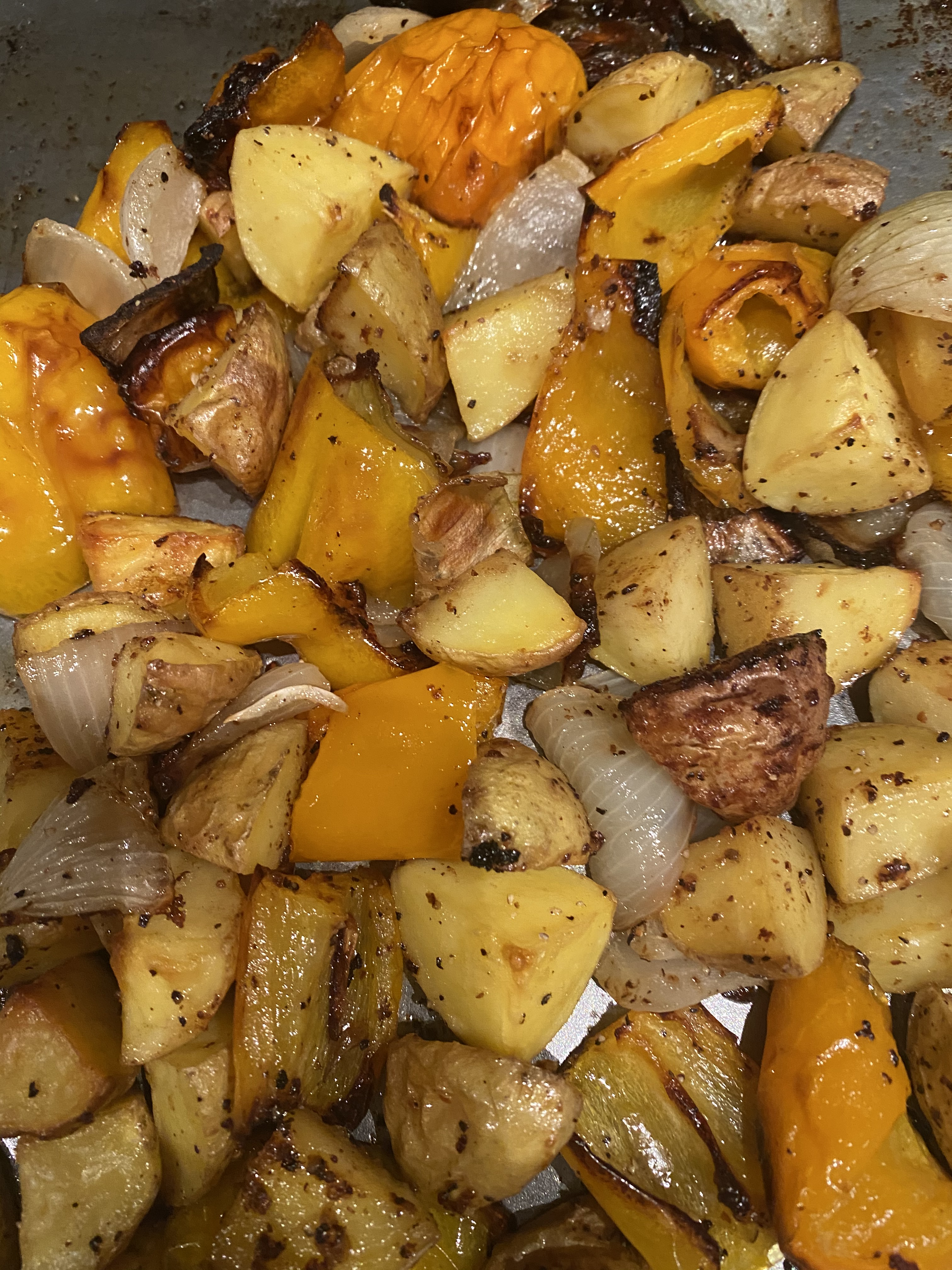 Roast until the eggplant is really soft and tender. I roasted for an hour and gave it a stir and was good to go.