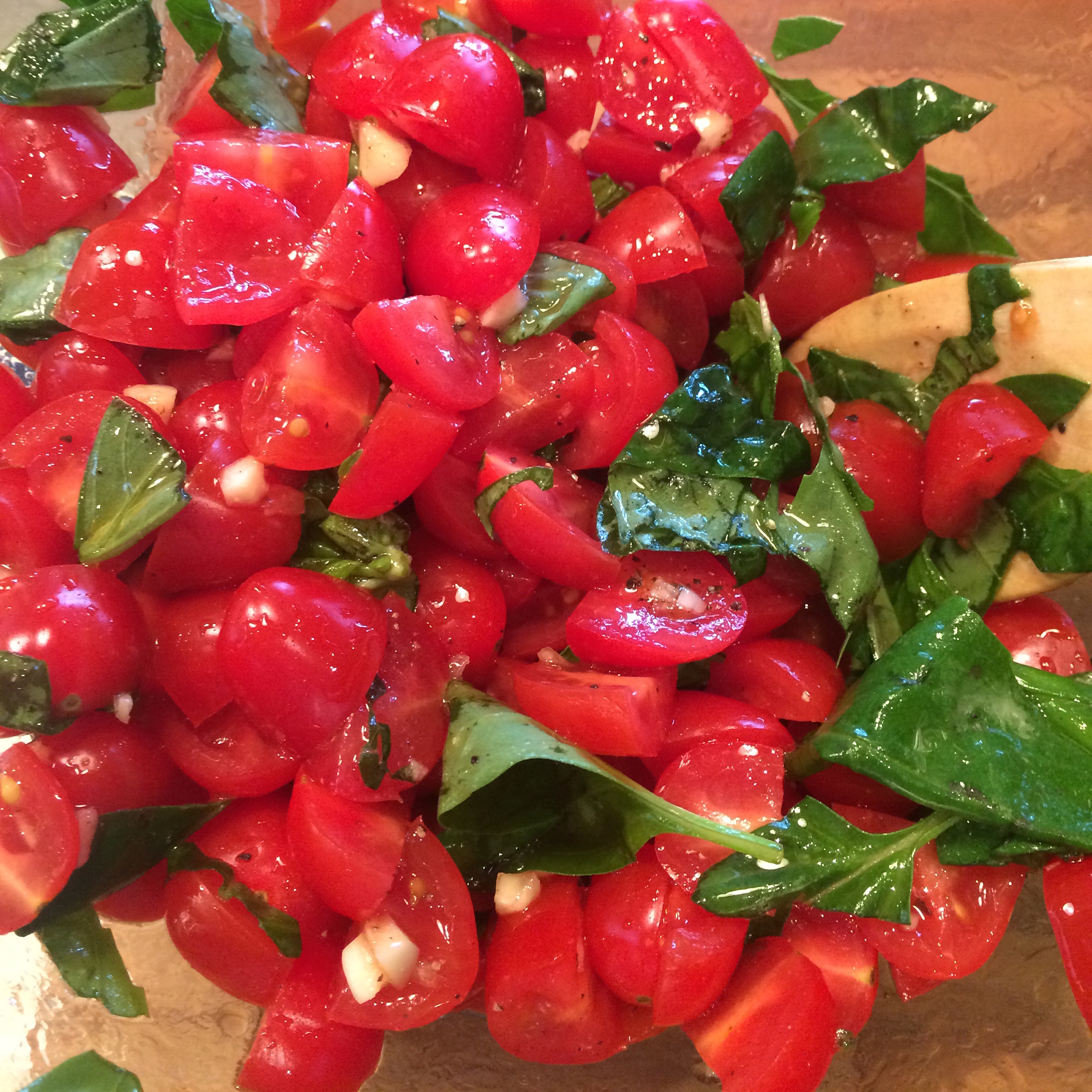 2 lbs. yellow tomatoes, I used regular sized tomatoes. You can use yellow or orange cherry tomatoes and get the same effect. I washed and dried tomatoes and cut into quarters or halves for easier blending. Heirlooms are amazingly delicious when in season which they are right now! My sister makes this recipe by parboiling the tomatoes, removing the skin and cutting core out of tomatoes. This is an other option. I opted for the easier method but both are delicious and work well.