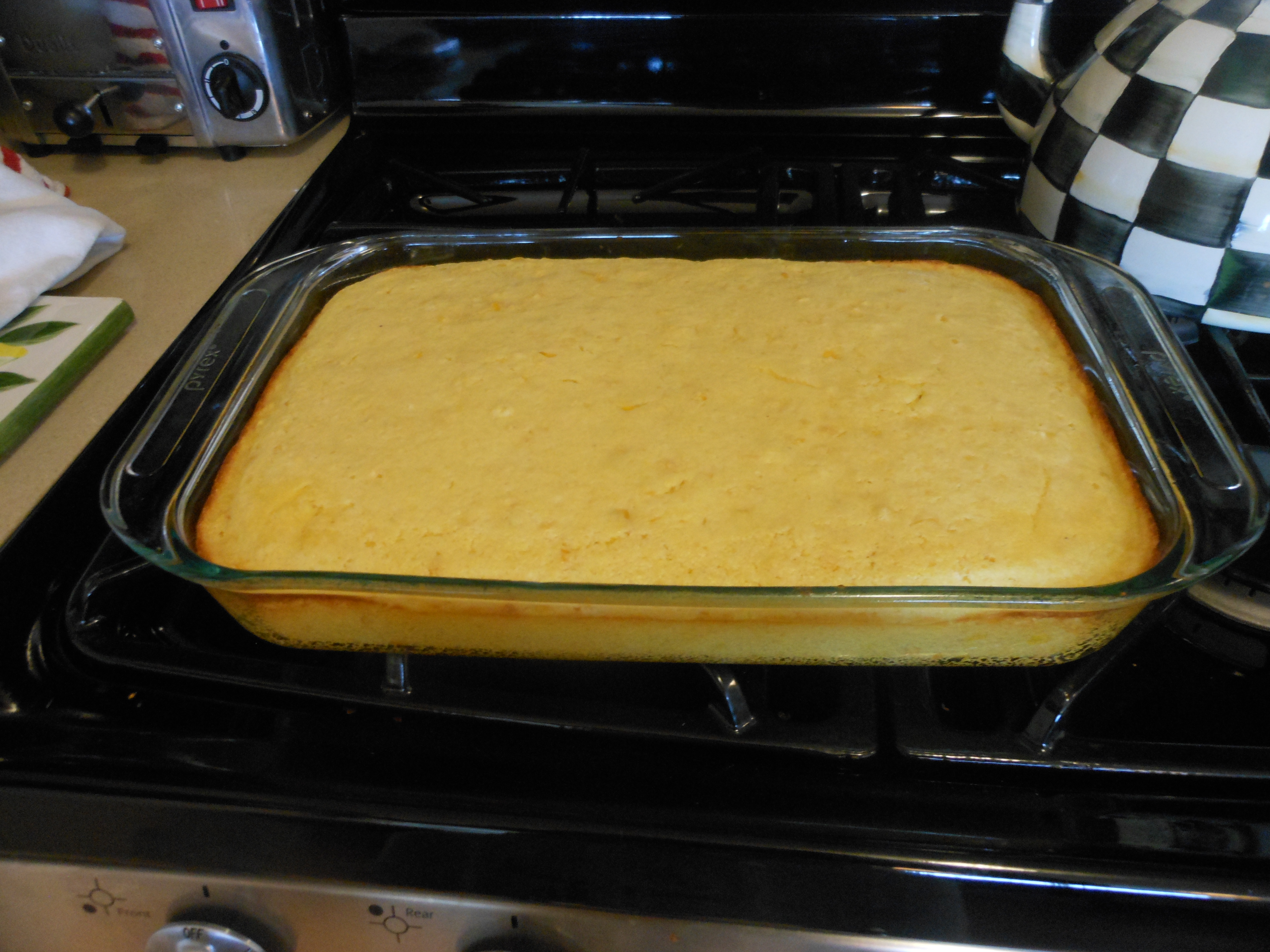 Pour into glass baking dish (Pyrex is good and I spray it first with a good cooking spray like Pam or Bakers Aid ) 9 x 12 works fine, it’s not a very deep pudding.