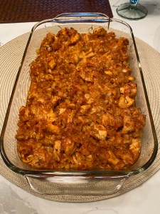 1 cup shredded Mozzarella Cheese –plus more if you would like to sprinkle more on top before baking — divided 1/2 into mixture and app. 1/2 on top and if you’re really trying to cut the fat content you can just eliminate the cheese inside the casserole and put on the top — I usually do both but honestly it will be delicious either way. Thats the good news with cooking you can add and subtract to your own specifications and it will still taste good.