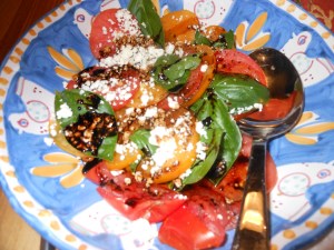Joel always asks me to cook halibut, now you have to understand that he doesn’t really like fish, so this request is a bit odd right from the start. He says he likes halibut and I usually make salmon. He loves shrimp but that doesn’t count, I know he’s an ex-seafood guy but shrimp was really his thing not fish. So today I decided to honor his request and make halibut. It has never really appealed to me , it seems like such a bland white fish. I really spiced it up with this chimichurri , it was delicious. Chimichurri sounds so intimidating but it is just a green marinade. It is usually made up of chopped fresh parsley, garlic, pepper and herbs bound with oil. I however decided to make it with cilantro not parsley. Obviously if you like cilantro do it this way, if not just use parsley. It was pretty easy and very tasty. I served it over rice pilaf and we had a side of tomatoes with balsamic syrup. You can also moderate the use of the crushed red pepper, since we like it spicy I used 3/4 teaspoon of the pepper, but use less or omit it all together. This was really pretty awesome if I do say so myself.