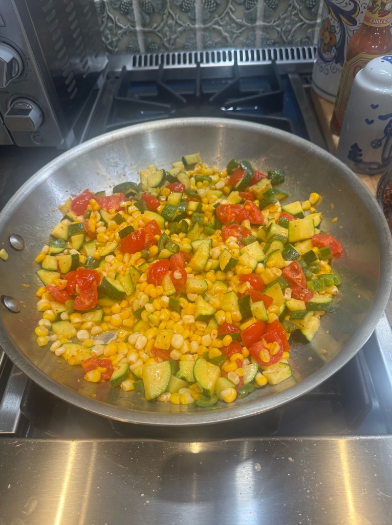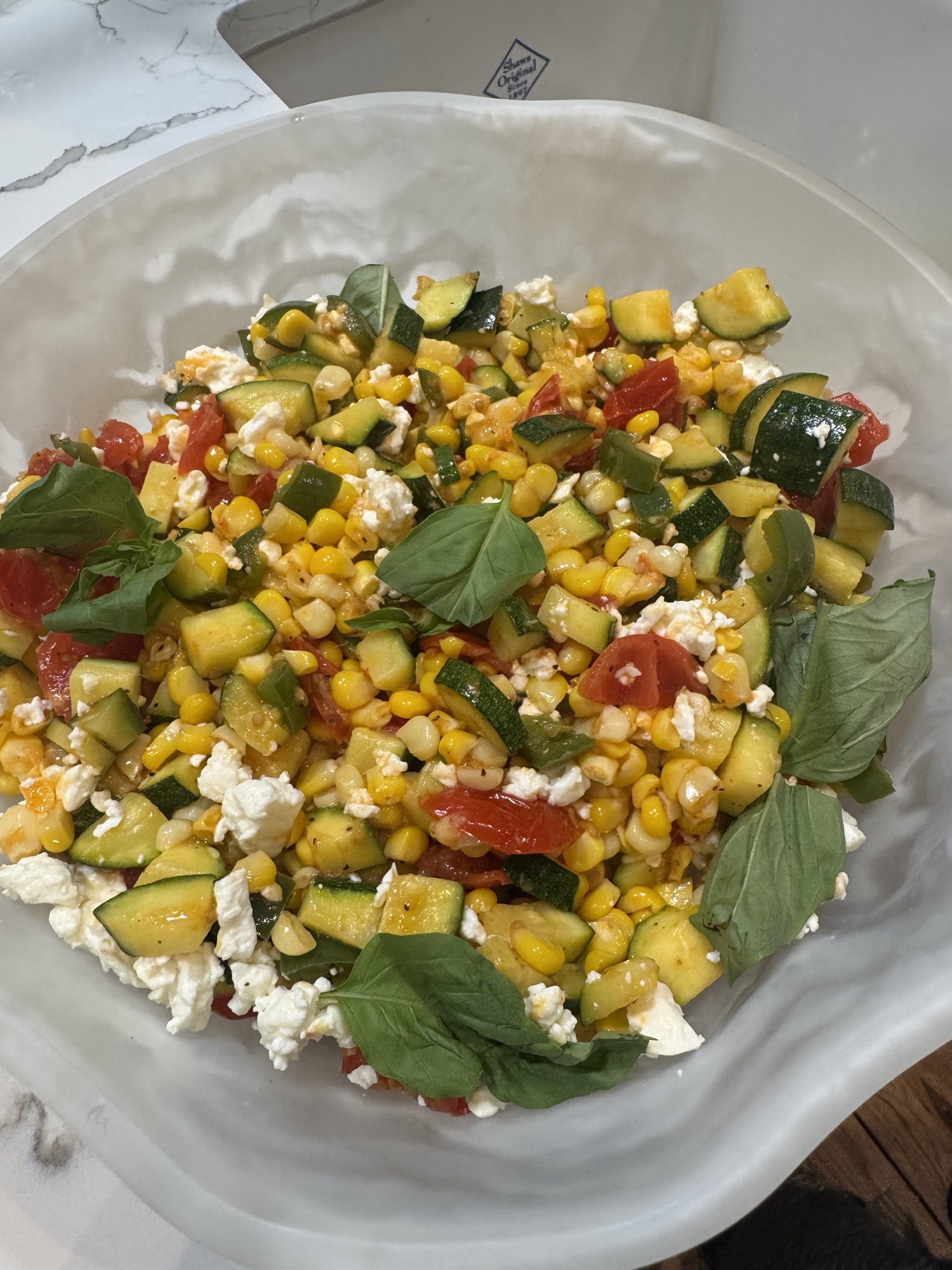 Add the lemon juice, olive oil, salt and pepper to the bowl. Taste for seasonings. Mix and allow to sit for a bit before serving. I made ahead and stored in fridge. I removed before serving for a while to bring to room temperature.