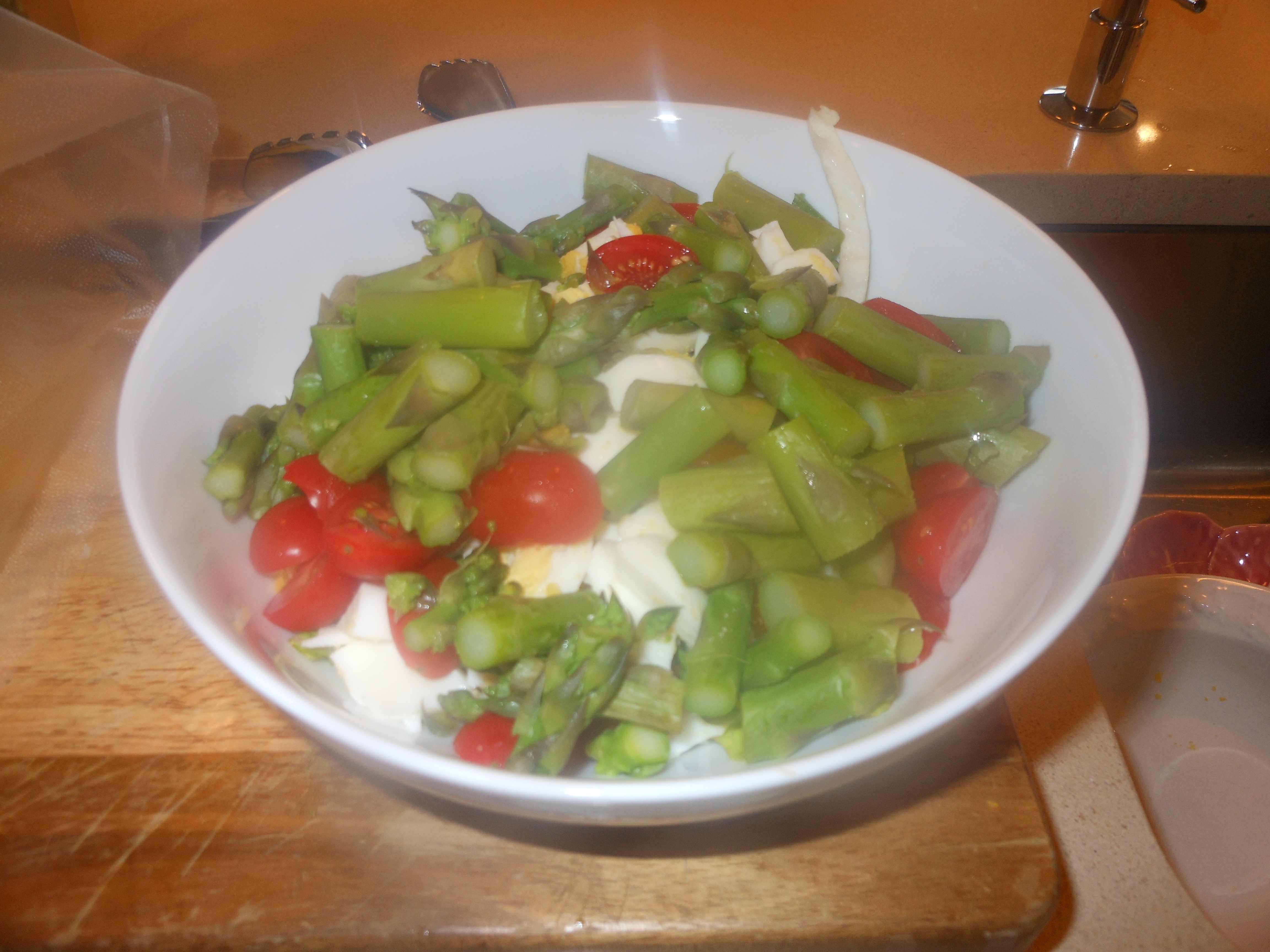 This was really delicious and light. Joel of course picked out every piece of asparagus, and put them in my bowl. That was fine with me because I love asparagus.