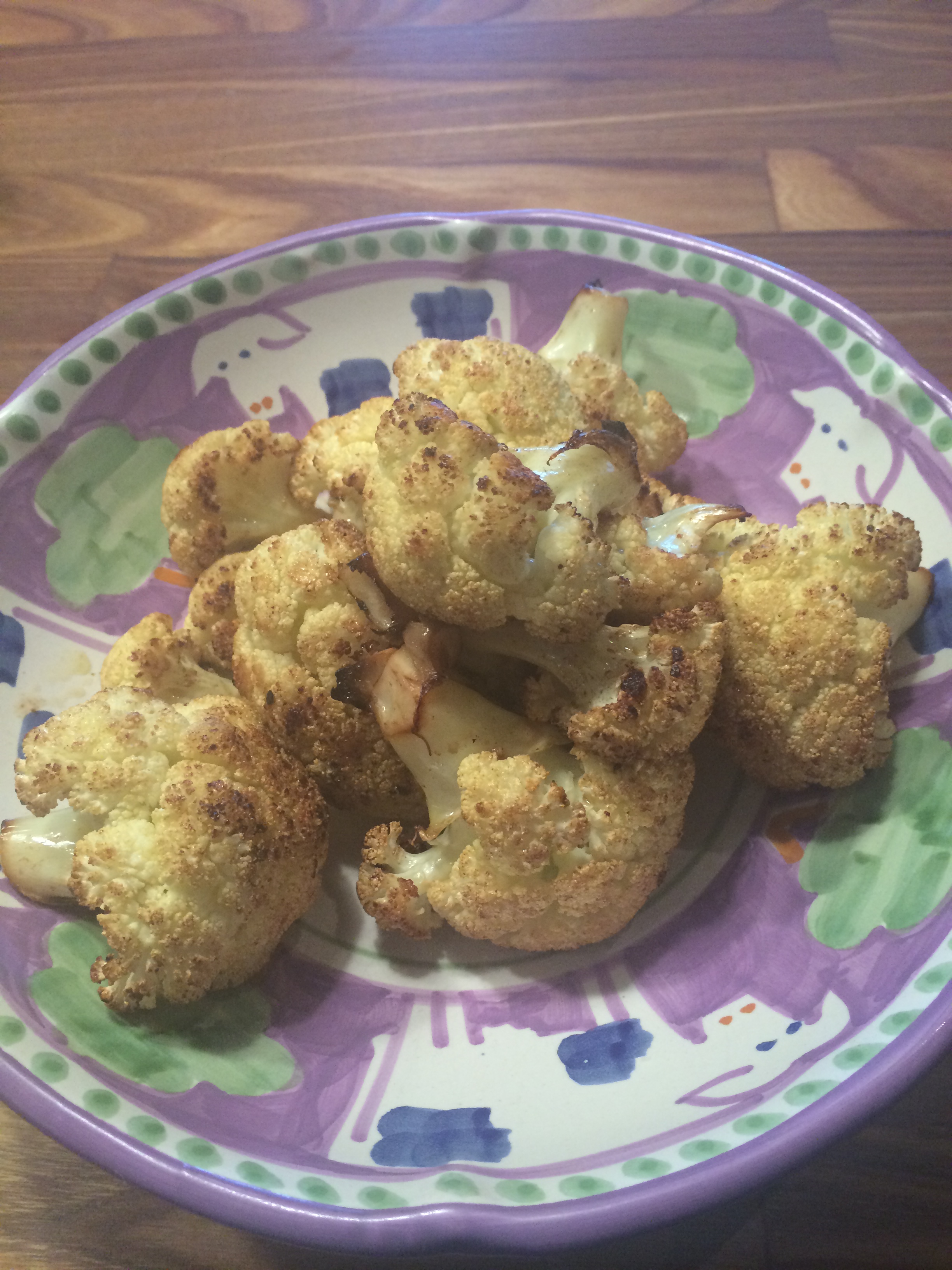 Stir in the cauliflower, diced up eggs, green onions and soy sauce mixture. Cook, stirring constantly, until heated through and the cauliflower is tender, about 5 minutes . Taste for soy sauce and add if necessary. I didn’t add any salt because the soy sauce was salty enough. After the first five minutes of cooking I throw in the cooked protein that I am using and continue to heat it all up stirring as I go. If you ‘d like you can also add more soy sauce at this point. Just heat till hot and serve.