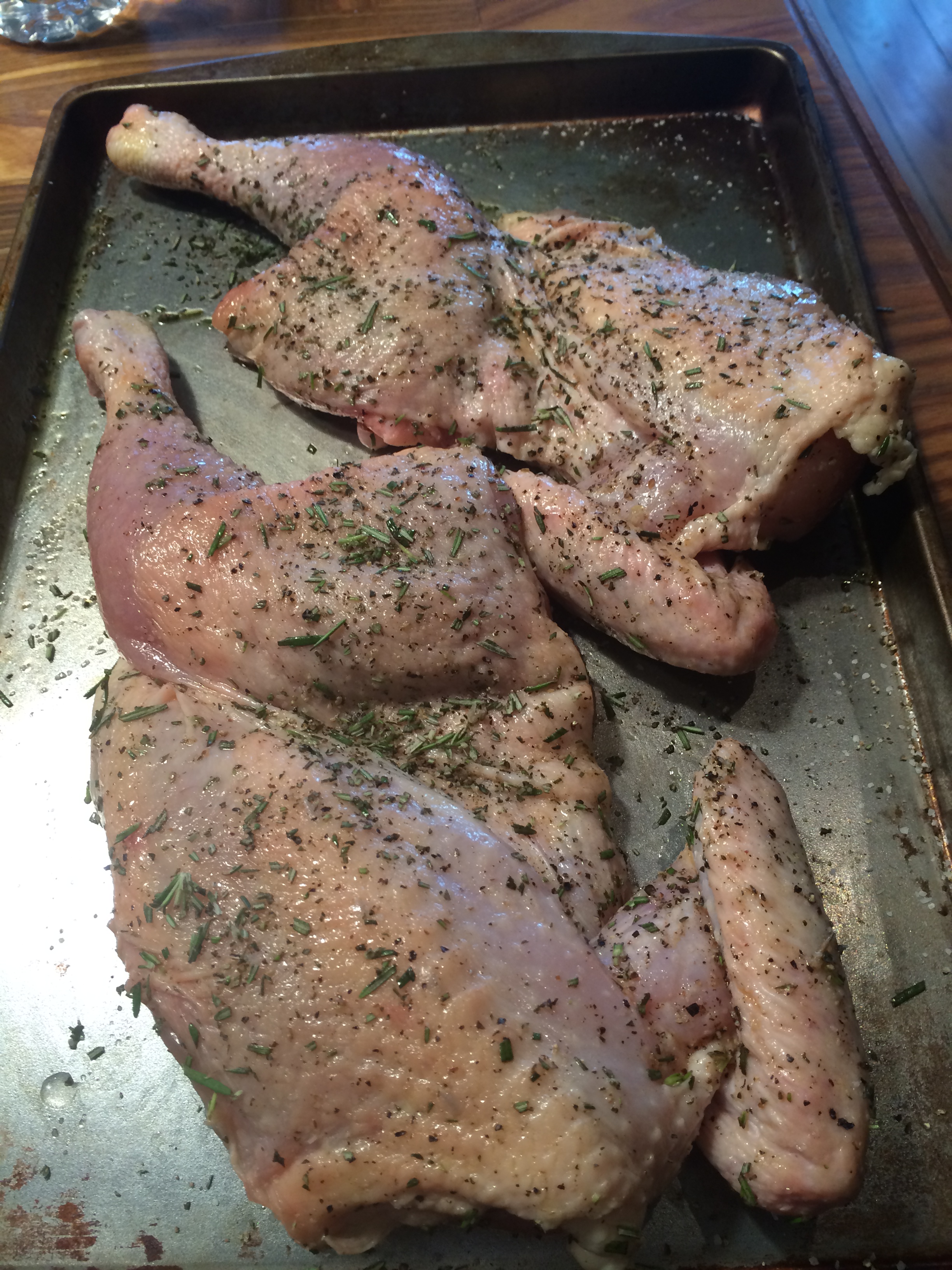 1 whole chicken with back-bone removed and flattened as much as possible, if you’d like you can have chicken cut into 2 halves.