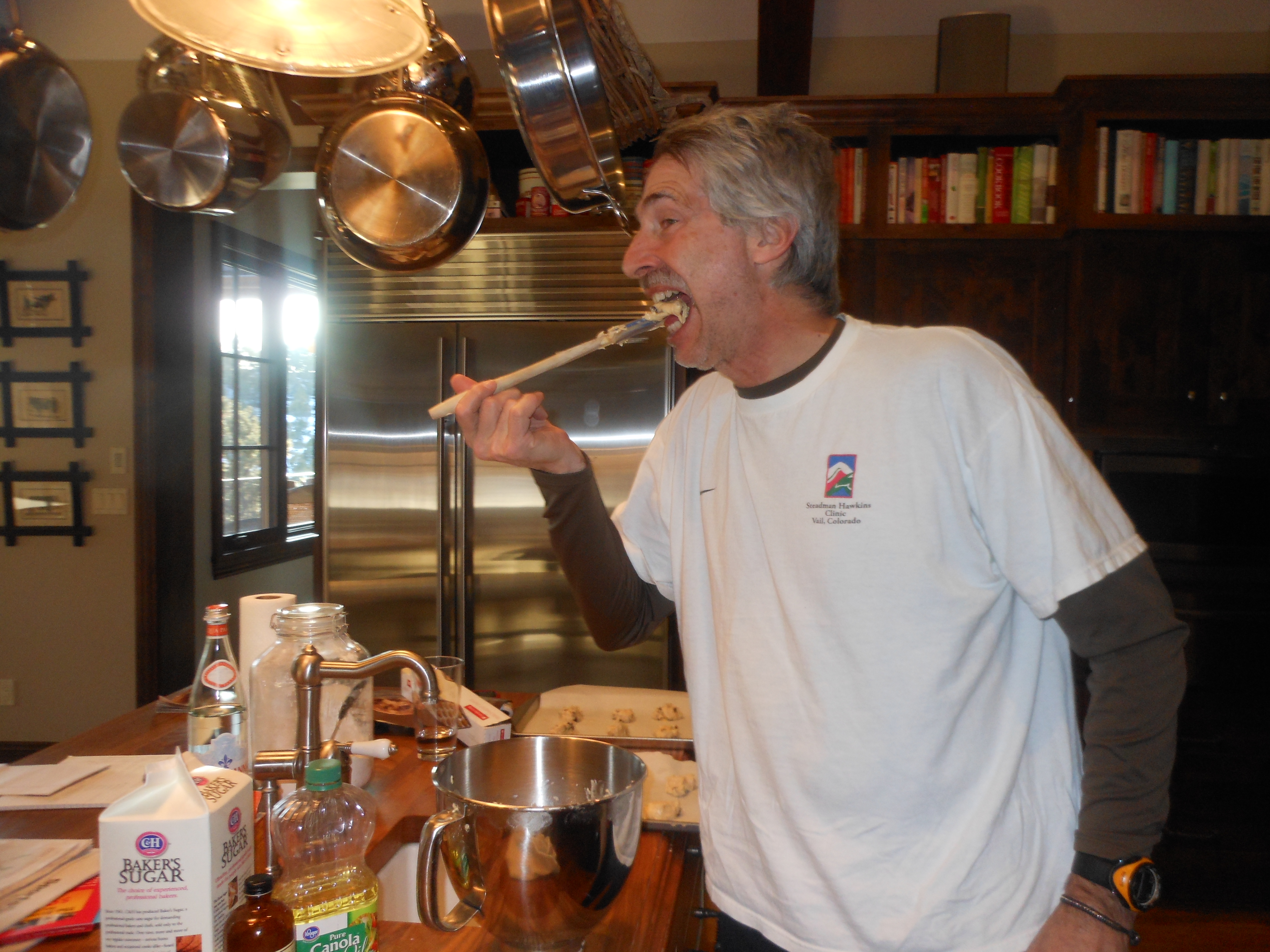 In another large bowl ( I used electric mixer) cream the butter and sugars. Add water and vanilla. Mix the ingredients until they are just combined. Add the eggs and mix them lightly ( don’t over mix the dough) just till combined