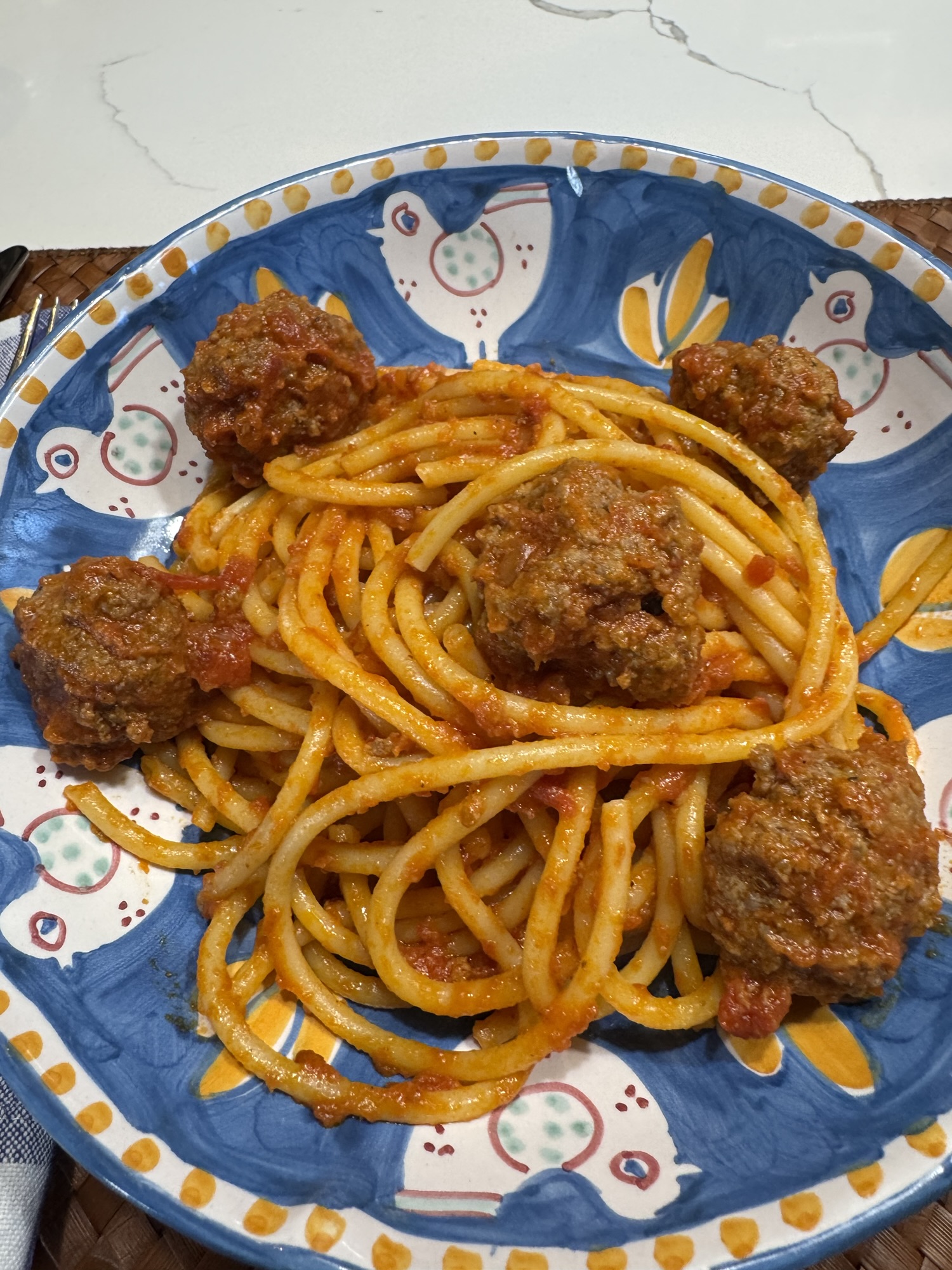 This is my favorite quick meatball recipe — My family was just here and dinner was spaghetti and meatballs — had all the ingredients on hand and I like the “simmer” method the best but oven baked will also work well. If I don’t have any homemade sauce on hand my go-to is Raos Marinara or Arabiata style . If you’re a fan of meatballs and spaghetti and who isn’t ? This is quick and easy and you can freeze them in a freezer container for another time. (up to 3 months) This is what I did using garlic powder and onion powder because didn’t have either one on hand but you can use whatever you have. this would also be great on zucchini noodles.