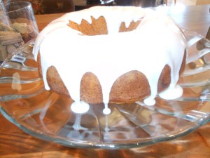 all-purpose flour, sugar, baking powder, baking soda, cinnamon, ground cloves, salt, vegetable oil, eggs, confectioner’s sugar, unsalted butter, vanilla extract, and milk