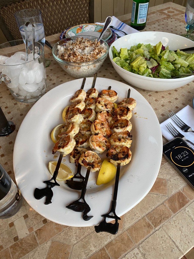 I cooked up some orzo and served shrimp over the orzo and it was perfect. Served with a nice light green salad as well.