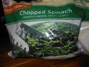 2 pkgs. frozen spinach (2 boxes) ( it’s app. 20 oz. of spinach, a bag and a half or 2 boxes)